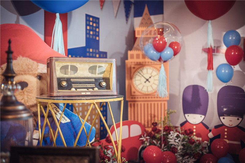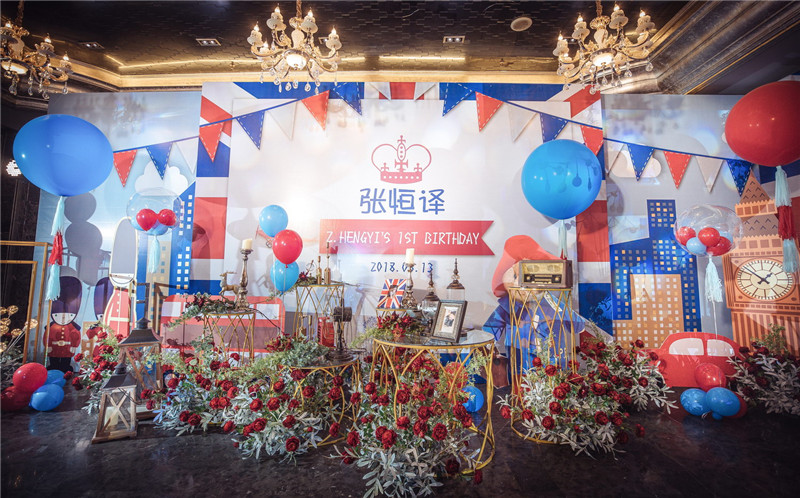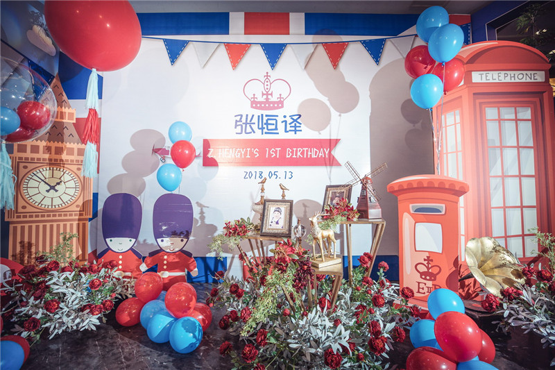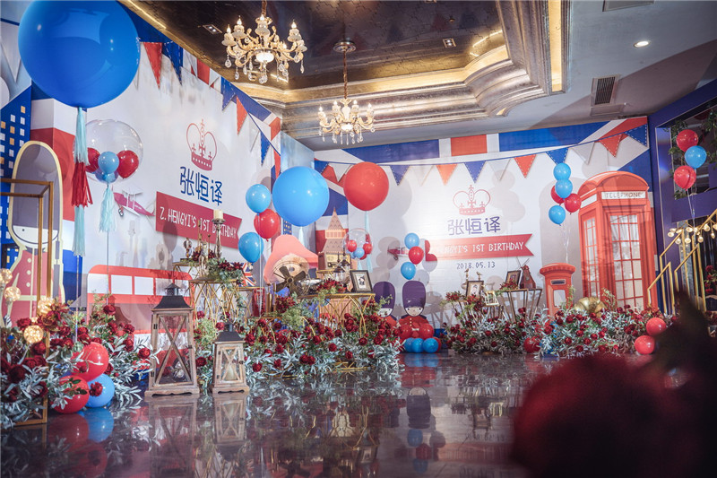 這次是小孩10歲的生日宴,我們使用的就是紅藍色主題,充滿了氣球、國旗、教堂、大鐘等道具,整個場景洋溢著夢幻幻想。