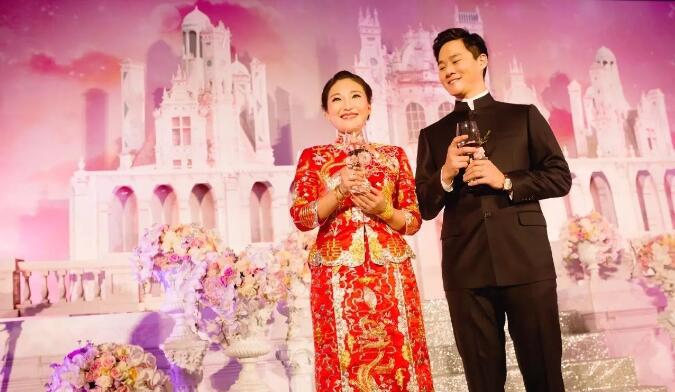 在儀式結束,宴會開始前,新人會直接在舞臺上向所有賓朋敬酒,說祝酒詞,但舉杯敬酒這儀態……五花八門